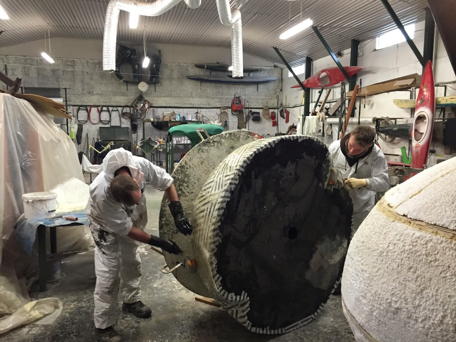 ビートルズの林檎とスティーブの林檎がもう少しで一層目のFRP積層終了。